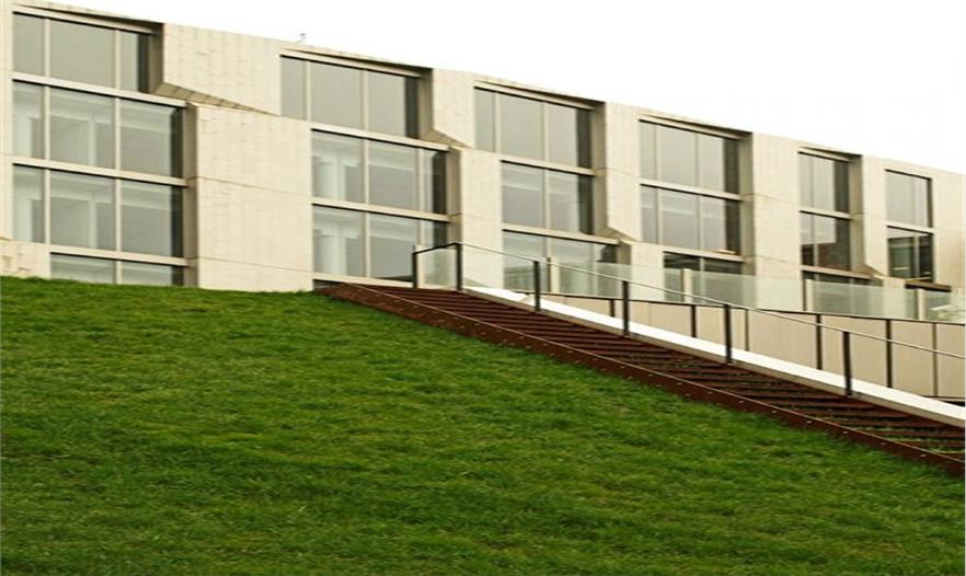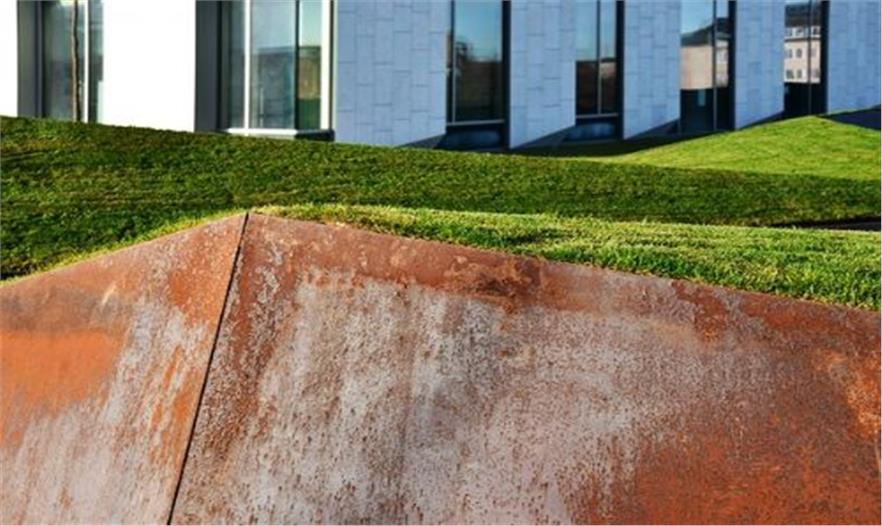 新的KPMG公司總部設(shè)在丹麥,景觀設(shè)計包括公共綠地——一座草被植物包圍的屋頂花園,該花園位于一個停車場之上,介于停車場的東邊和一個非常正規(guī)的入口處的西邊地段。
