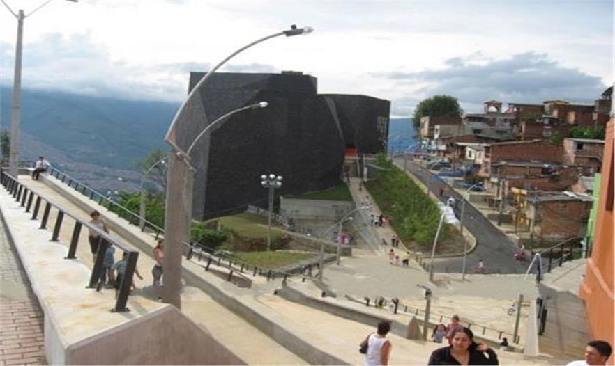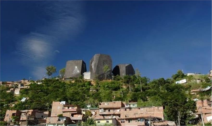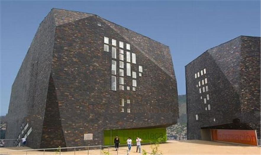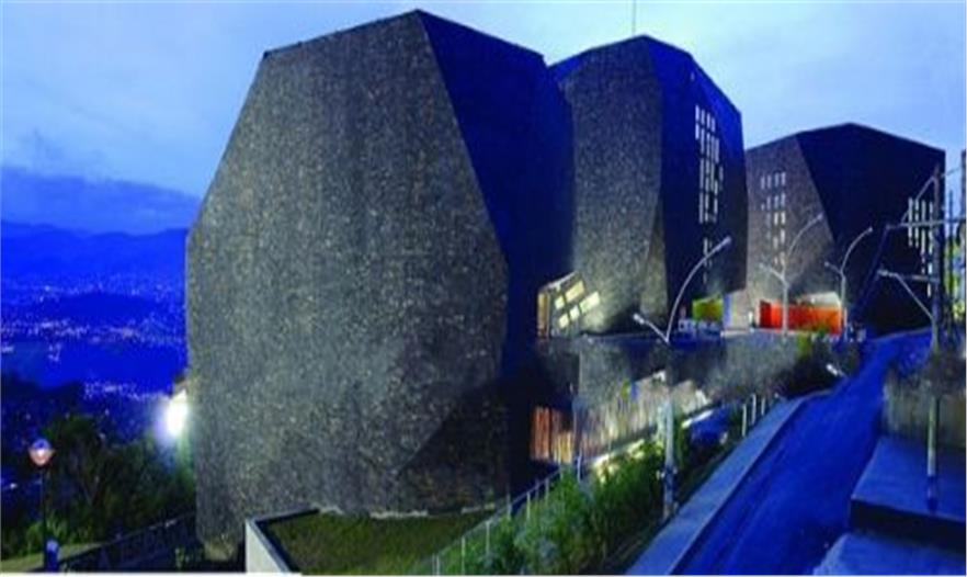 這三塊位于哥倫比亞圣多明各(Santo Domingo, Colombia)的黑色巨石是當(dāng)?shù)氐囊蛔鶊D書館,2007年建成,叫作 Biblioteca Parque Espana(英文為Spain Park Library:西班牙公園圖書館),設(shè)計來自 Giancarlo Mazzanti。