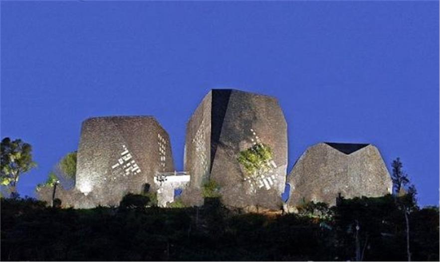 這個圖書館位于山頂,居高臨下,天生可成為一個標(biāo)志性的建筑。三塊人工巖石分別是是圖書館、交流中心和文化中心,它們由一個平臺相互連接起來,平臺成為一個可遠(yuǎn)眺風(fēng)景的公共場所。