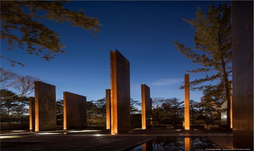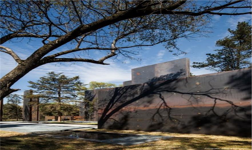 項(xiàng)目中的空隙是指介于鋼墻和樹(shù)木之間的空間。這個(gè)空隙或者空白提醒我們記住那些逝去的人們,墻的表面,生銹或如鏡般光潔,展示出我們可能會(huì)迷失,補(bǔ)充或有多個(gè)自己。除此之外,如果將暴力定義為破壞,70道鋼墻的建筑將成為暴力的最佳解藥。