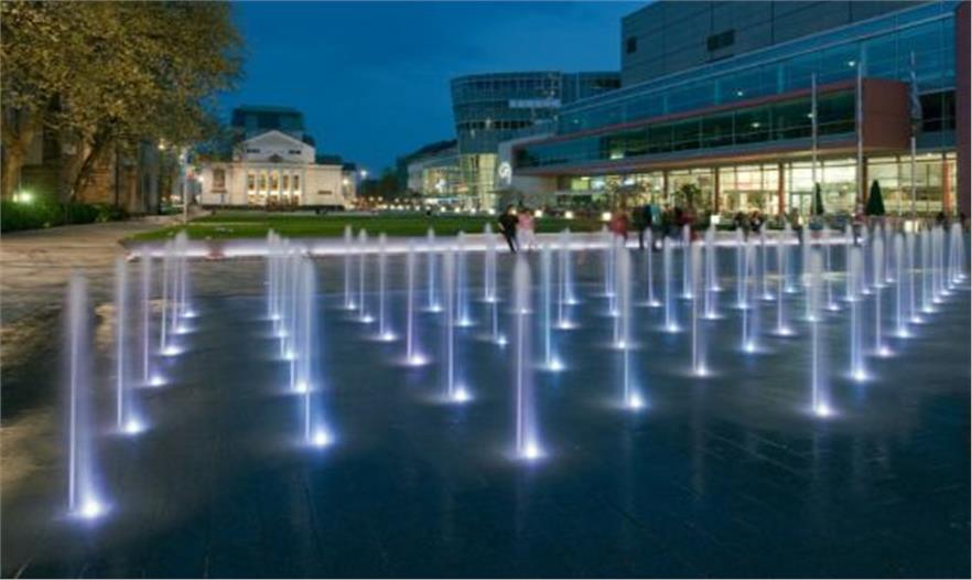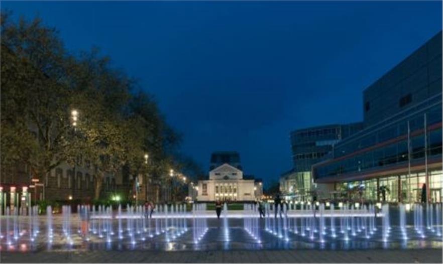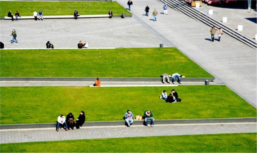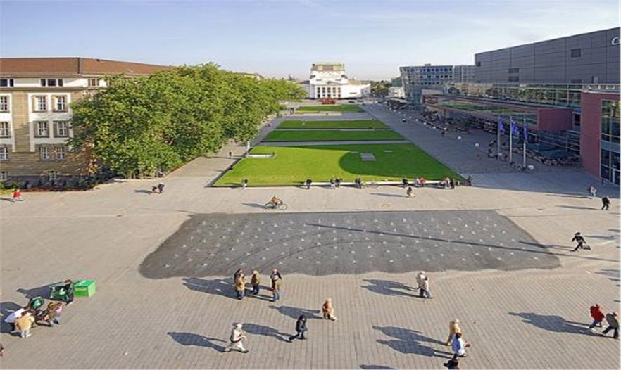 德國(guó)杜伊斯堡市區(qū)的柯尼希-海因里希廣場(chǎng)景觀改造設(shè)計(jì),是為了突出廣場(chǎng)的中央地理位置。廣場(chǎng)的中心由一處名為“綠色地毯”的加長(zhǎng)草坪區(qū)構(gòu)成,草坪區(qū)由五大元素構(gòu)成,完好地保留了舊草坪的迷人之處和靈活性。在春季,“漂浮的草坪”成為片花毯,番紅花盛開,五顏六色的花瓣鋪滿整個(gè)草坪。每當(dāng)夜幕降臨時(shí),地上的LED聚光燈為突出的草坪邊緣提供照明,以提升廣場(chǎng)夜晚景觀。