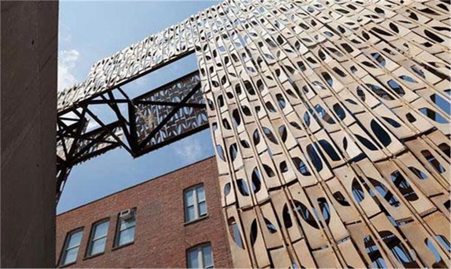“滑板碎片”幕墻亮相2013年美國現(xiàn)代藝術(shù)博物館音樂節(jié),并成為最大的關(guān)注對象。整面幕墻都是由滑板木片殘余構(gòu)成,呈空隙狀分" />