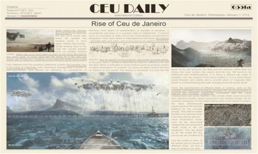 里約熱內盧的城市視覺競賽評審委員會是一個國際性的委員會。評審由曾經是主席的Alejandro Zaera-Polo和Jeffrey Inaba,Jeroen Koolhaas,Hernan Diaz Alonso,Pedro Riveraand Cristiano Toraldo di Francia.等人組成。Ceu是以惡搞多重性的建筑,有集中式管理也有自我組織能力,有效率優(yōu)先也有和諧共存,有層層隸屬也有平等的多元主義。一個特殊獎(農場獎)獎勵給了由Alessandro Nardacci,,Alessandro Oltremarini 和Federico Marchi.建設的Andrea Bartoli農場文化公園。