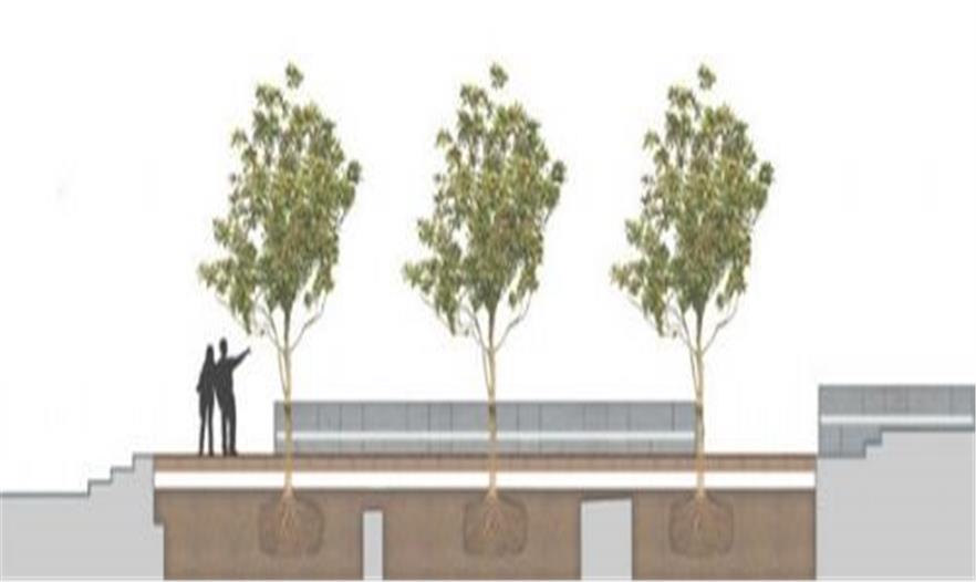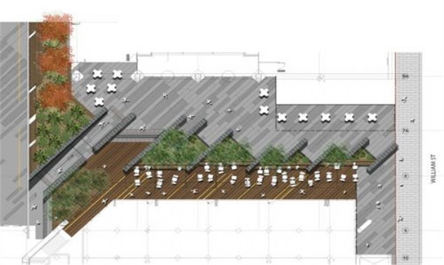 設計項目包括一塊以木蘭樹為兩個廣場中間一個主要的視覺節(jié)點的景觀設計,木蘭樹在此還可以阻擋風力;為零售空間提供的正式座位區(qū)和為當地居民吃午飯設置的非正式地區(qū)。
