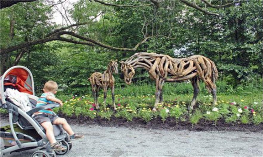這個(gè)作品有點(diǎn)不同,它是Heather Jansch of Britain 制作的雕像,名為“奧德賽(母馬)與希望(小馬)”。這是用廢棄的木頭雕成的,是一件環(huán)保作品。