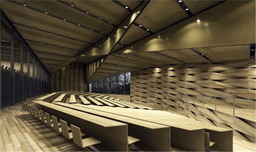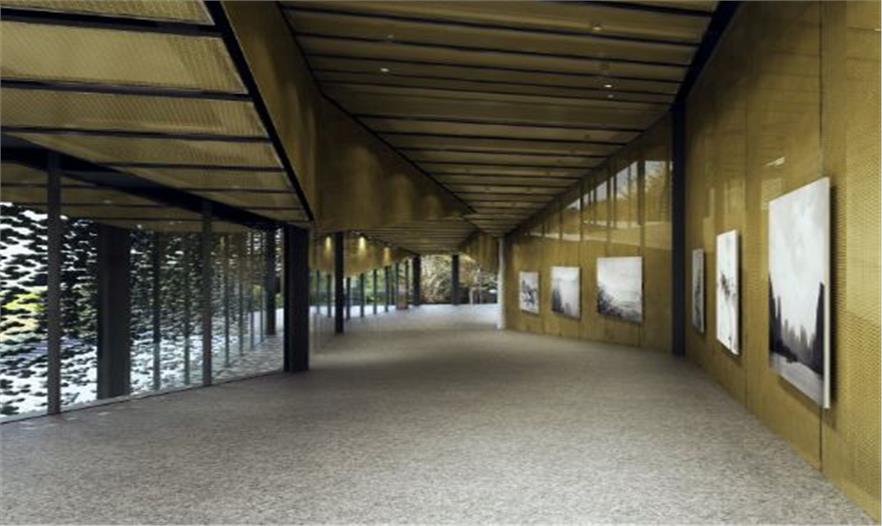 美術(shù)館形態(tài)與傾斜的地形相結(jié)合,并沒有侵入到綠色的自然環(huán)境中。菱形的建筑形態(tài)創(chuàng)造了流動(dòng)性的展覽空間,交替變換的層高和空隙,將參觀者帶到被自然景觀包圍的戶外區(qū)域。當(dāng)?shù)卦慕ú暮突厥赵倮玫牟牧献尳ㄖ幕赝寥乐猩L(zhǎng)出來。這座4936平方米的美術(shù)館預(yù)計(jì)于2014年春季向公眾開放。