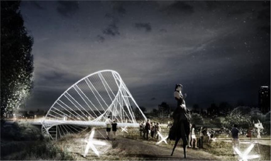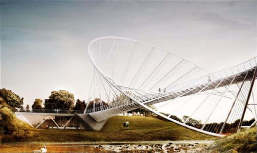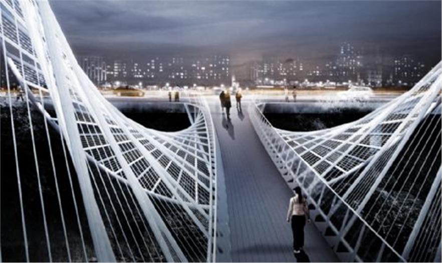 奧地利建筑師Alex Daxböck和Chris Precht 組建的penda工作室給我們分享了他們的O項目,Meadows Salford 橋競賽方案。這座橋重新詮釋了傳統(tǒng)橋梁,其標(biāo)志性的造型與當(dāng)?shù)氐膫鹘y(tǒng)與優(yōu)雅協(xié)調(diào),十分得體的歡迎到訪者,并根據(jù)來訪者位置的移動發(fā)生 著改變,完成了與人的交互。橋體一側(cè)林著繁忙的道路,一側(cè)聯(lián)系美麗的草甸,人們從側(cè)面看構(gòu)架輕盈,逐漸轉(zhuǎn)到正面,構(gòu)架在視線中從線逐漸變成一個橢圓,最后再到氣場十足的正圓,給人們留下了深刻的印象,完成振奮人心。