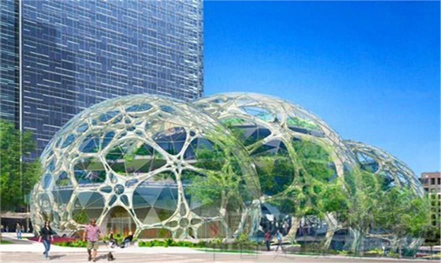NBBJ一直致力于在西雅圖市中心建設一座引人矚目的、可持續(xù)發(fā)展的、友好公開訪問的公司總部。在評審委員會多次拒絕之后,NBBJ終于提供強有力的證據(jù),說服委員會,并獲得一致批準,取得在辦公區(qū)中心建設3座自然生態(tài)博物館。這三個植物園是三個圓頂結(jié)構,如同3個水泡。具有“輕視覺、有機幾何形態(tài)和雕塑性”。根據(jù)最新的設計方案,新的計劃將會增加公眾參與的空間,其中1672平米用于零售業(yè),還增加了一個1.5米寬的軌道,連接Blanchard街和第七大道。