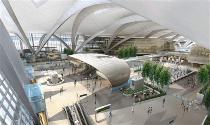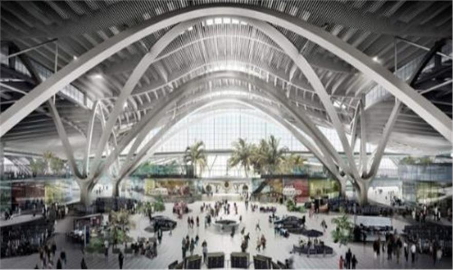 據(jù)阿聯(lián)酋國家日?qǐng)?bào)稱,該宏偉建筑的修建需要超過8.4萬噸的鋼和玻璃。進(jìn)站口的中央大廳會(huì)有50米高,將有一個(gè)8400平方米的藝術(shù)畫廊。另外兩個(gè)機(jī)場(chǎng)(一個(gè)在迪拜一個(gè)在多哈)也在建設(shè)中。