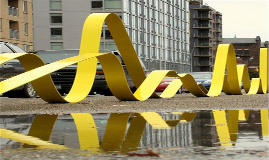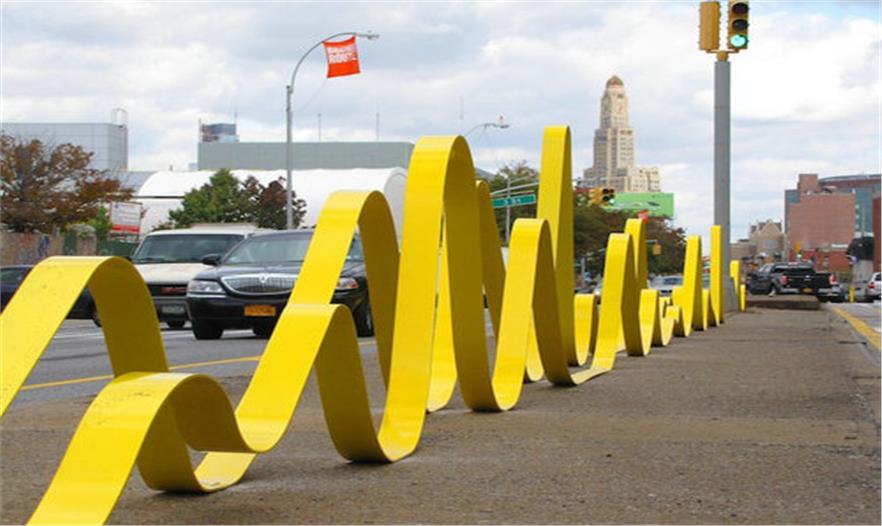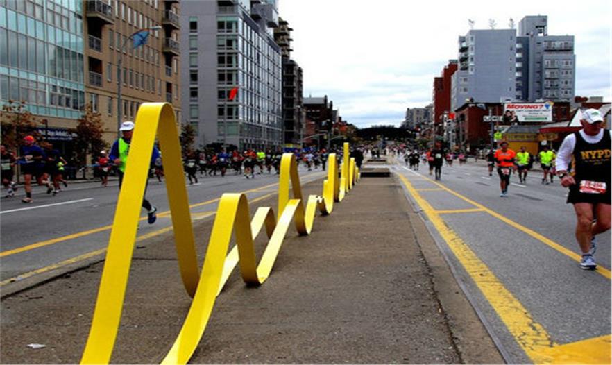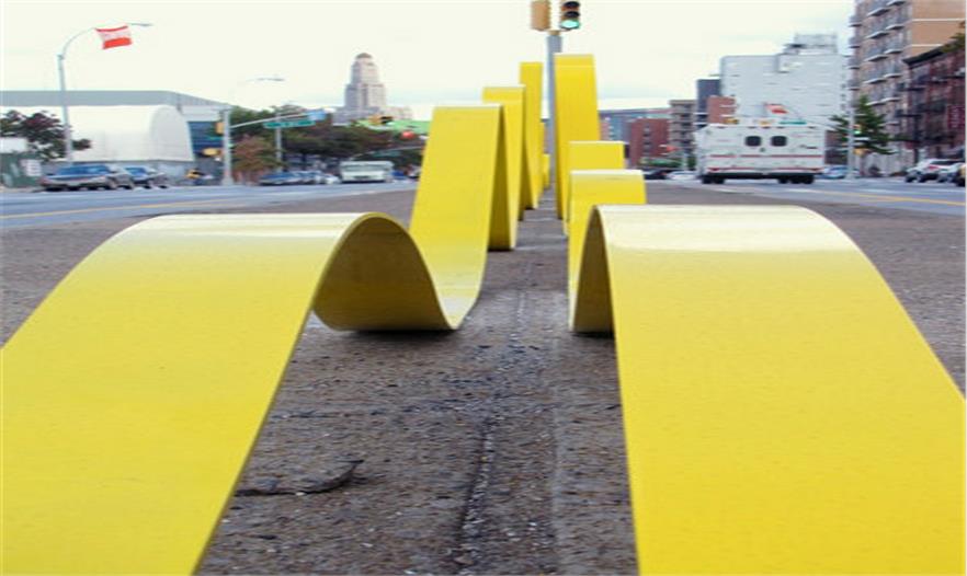 Emily Weiskopf是一位紐約布魯克林的藝術(shù)家,他最新的藝術(shù)裝置是位于第五大道上一個(gè)整體為黃色,長(zhǎng)達(dá)140英尺的護(hù)欄,護(hù)欄以飄逸的彩帶為造型,整體活潑跳躍,讓整個(gè)街區(qū)都充滿了活力。