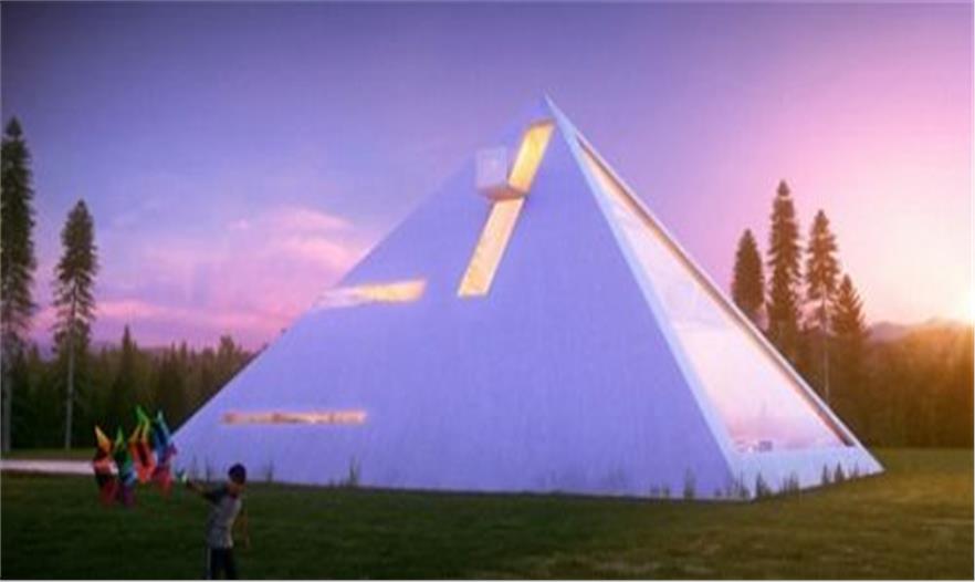 墨西哥建筑師Juan Carlos Ramos的視覺模擬作品,以其外形特點命名為“Pyramid House”(金字塔)住宅。建筑呈正三角錐形,正立面為全玻璃結構,具有很好的視覺通透性。內部分為三層,將臥室、起居室、廚房、陽臺和車庫等功能區(qū)域巧妙囊括于一體。
