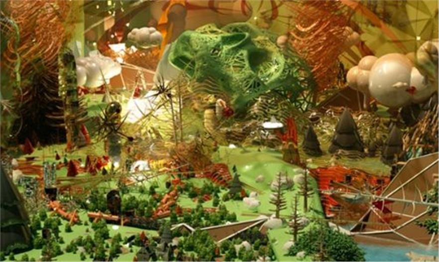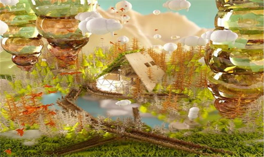 Alex macleod在一個藝術(shù)展上建造了這個頗具3D藝術(shù)效果的作品,整個作品由光滑細(xì)膩的山體、湖泊以及大團(tuán)大團(tuán)的云朵等等組成,顏色非常鮮艷、明亮動人。他的設(shè)計(jì)作品一方面展現(xiàn)清新浪漫的自然風(fēng)景,另一方面又具有超脫現(xiàn)實(shí)的烏托邦主義情節(jié),它給人們展現(xiàn)了一個過去與現(xiàn)在、虛擬和現(xiàn)實(shí)相融合的作品。