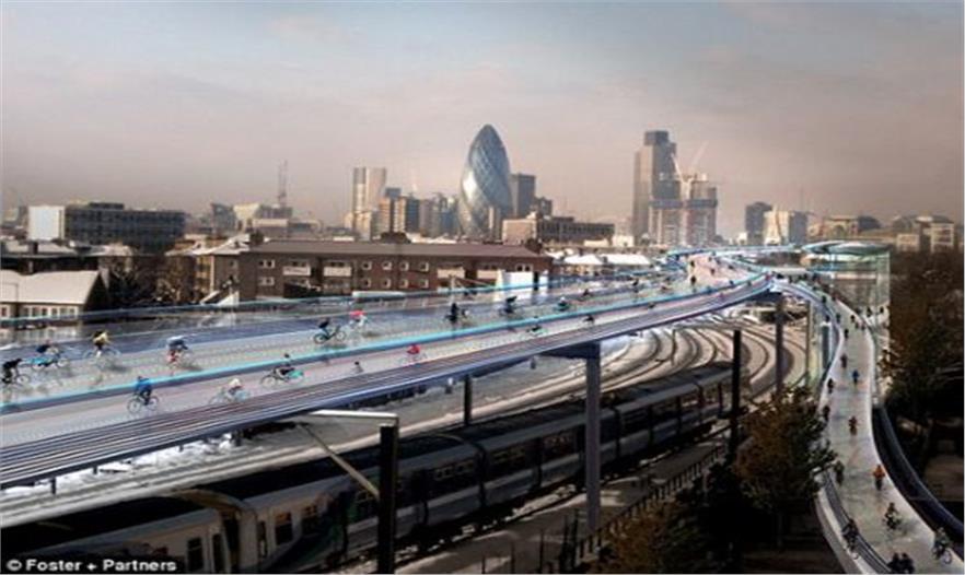 這個(gè)名為“天空行車(chē)”的第一期規(guī)劃有10條線路,總長(zhǎng)約220公里。自行車(chē)高速公路網(wǎng)從倫敦市中心往外延伸,整個(gè)公路網(wǎng)以高架的形式沿著建設(shè)在普通鐵路的上空,約3層樓高。建成后線路每小時(shí)最多可容納1.2萬(wàn)輛自行車(chē)。