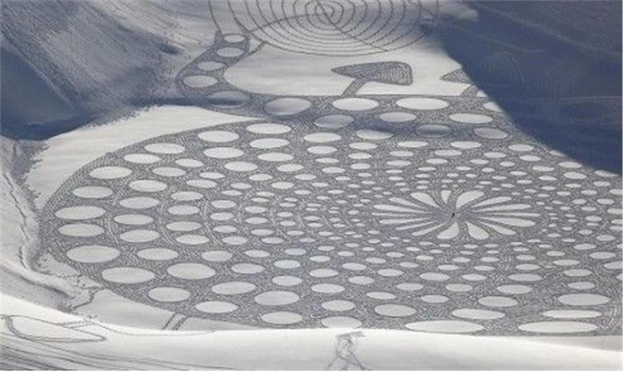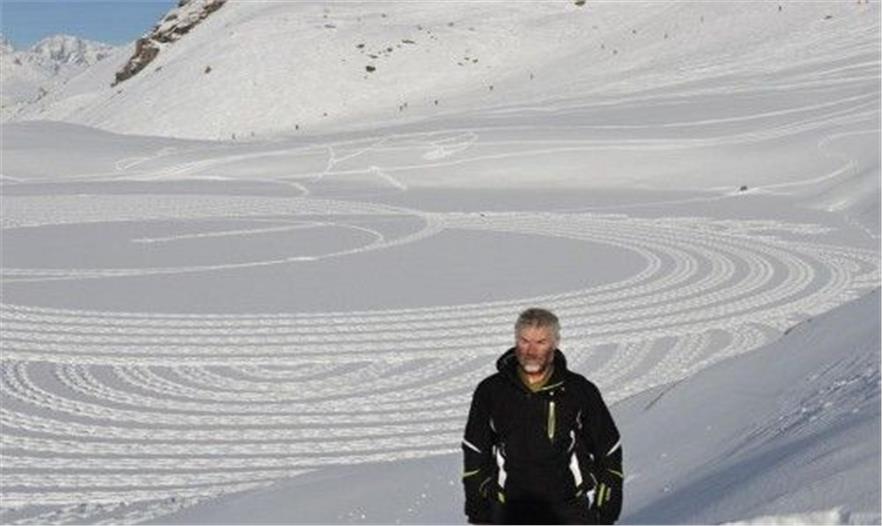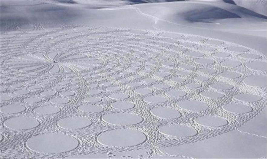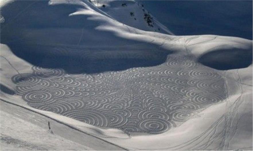 指南針和雪地靴乍一聽似乎和藝術(shù)絲毫不沾邊,但是近日一名來自英國的藝術(shù)家靠這兩樣簡單的工具,在法國的滑雪勝地完成了一系列令人嘆為觀止的藝術(shù)創(chuàng)作。