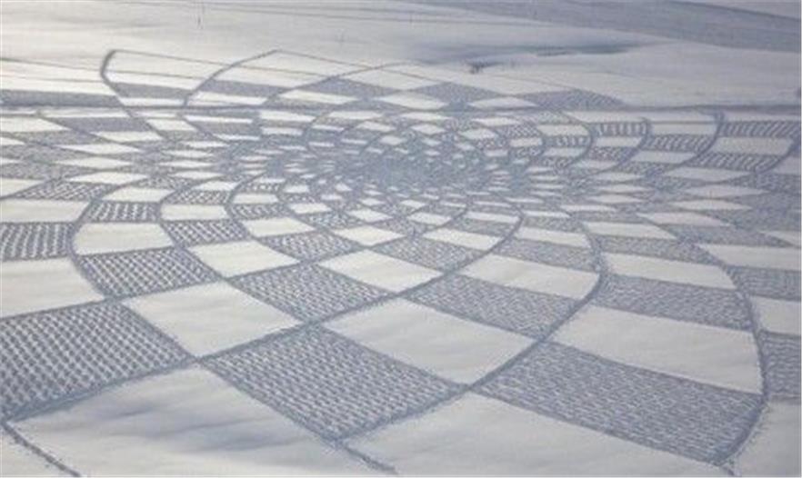 這些圖案通常由幾何圖形、曲線和弧線組成,貝克需要首先精密地計算出每一個點(diǎn)中間需要多少距離,然后利用卷尺和計步器一步一步來完成。 當(dāng)然,不是所有的雪地都可以制作出這樣的作品。為了達(dá)到最完美的效果,貝克對場地的選擇有嚴(yán)格的要求,雪地上必須沒有任何其他的腳印,質(zhì)地應(yīng)該為粉狀雪,雪的厚度應(yīng)為9英寸(約23厘米)。