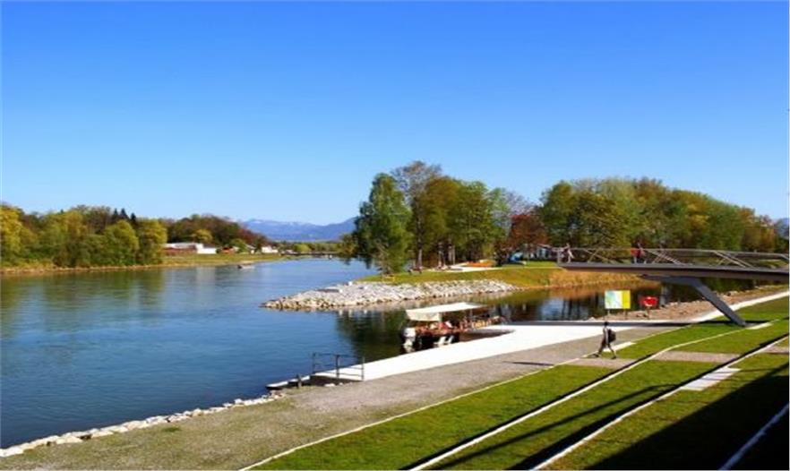 這個(gè)新的Mangfall公園把Rosenheim 市和它的河流連在了一起。木板路景觀加深了原有的河流景觀概念,并且使大自然以多種不同的方式展現(xiàn)在游客的面前。這個(gè)500米長(zhǎng)的系統(tǒng)由木板路景觀和八個(gè)連接市中心和Mühlbach河的橋組成。這條木板路是這個(gè)新公園的主干,并且有多種不同的作用,包括散步,休息,觀光。沿著這條木板路景觀,寬大的臺(tái)階可以供人坐著休息,同時(shí)近距離欣賞到外面的美景。Mühlbach河是作為城市河流設(shè)計(jì)的,聯(lián)系著將來(lái)要開(kāi)發(fā)成居住區(qū)的區(qū)域和市中心的便捷的生活設(shè)施。木板路的最北邊通到一個(gè)八米長(zhǎng)的凸出來(lái)的平臺(tái),站在這里可以將河岸美景一覽無(wú)余。一個(gè)個(gè)的大礁石影響著水的流向,也給了游客一個(gè)可以坐著賞景的地方。周?chē)€有體育場(chǎng)等各種娛樂(lè)設(shè)施,可以滿(mǎn)足人們的不同需求。