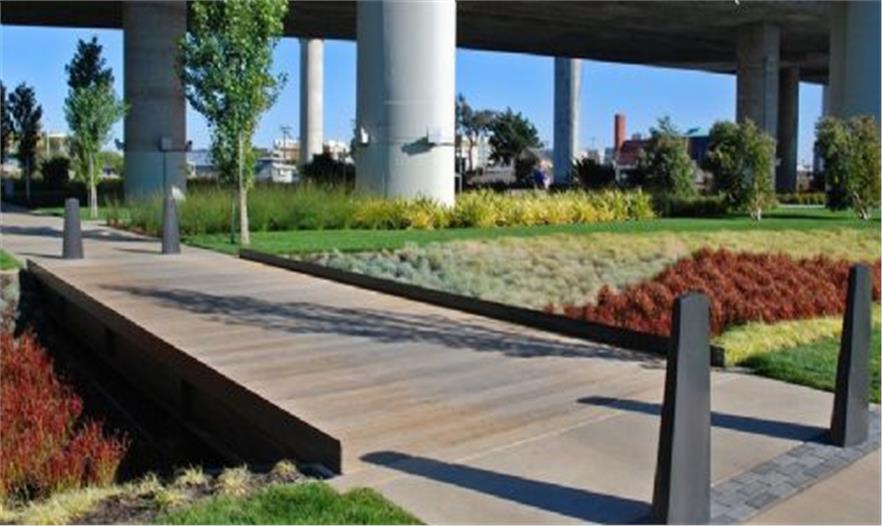 迷欣灣坐落于舊金山負有盛名的南部海濱區(qū),這一工業(yè)舊址改造區(qū)占地303英畝(約123公頃),毗鄰棕櫚成排的Embarcadero這一市區(qū)主要機動車道之一,項目場地最初是舊金山海灣的一部分,經(jīng)年累月后成為鐵路廣場、工業(yè)設施、倉房和碼頭的聚集地,設計師將一處廢棄的濱水區(qū)域改造成宜居的開放公園,并提升了周圍場地的商業(yè)價值。迷欣灣城市公園項目設計簡潔有力,體現(xiàn)了美國一流的景觀設計水準。