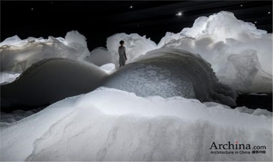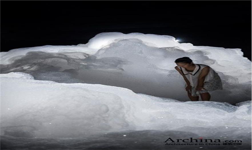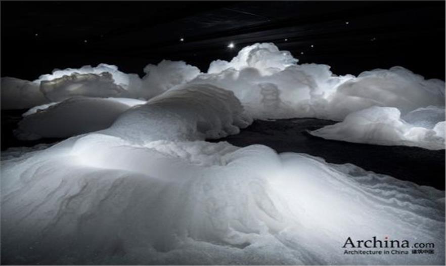 這是日本藝術(shù)家 kohei nawa 制作的獨(dú)具創(chuàng)意的作品,在漆黑的屋子內(nèi),放置雪白的云狀泡沫,人們置身其中,如同徜徉在奇幻的云海里,給人超凡脫俗的空間體驗(yàn)。