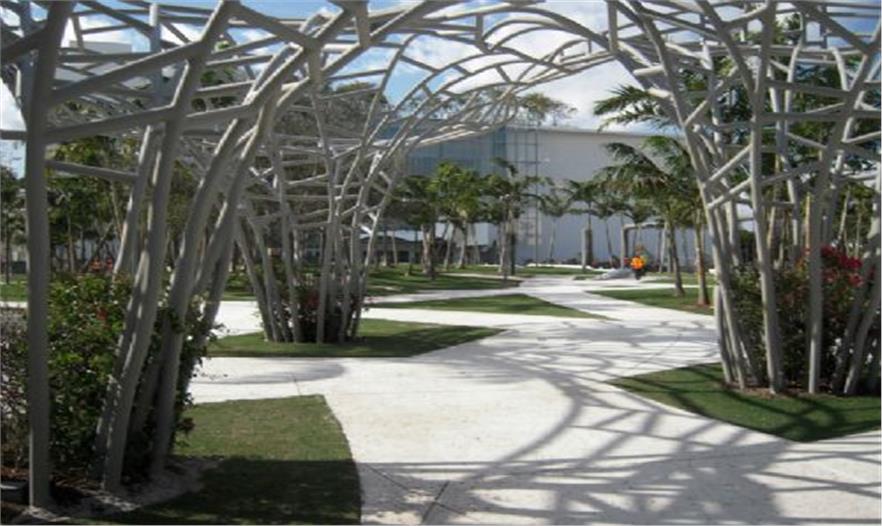 林肯公園也將擁有一些獨一無二的特征。首先,一些棚架環(huán)繞在公園的四周,他們的設(shè)計靈感來自于南福羅里達州特殊的熱帶氣候形成的蓬松的積云云層。手工制作的彩繪鋁結(jié)構(gòu)不僅提供了遮陰而且使花藤壯觀的開花,更加的突出公園門口的顏色。