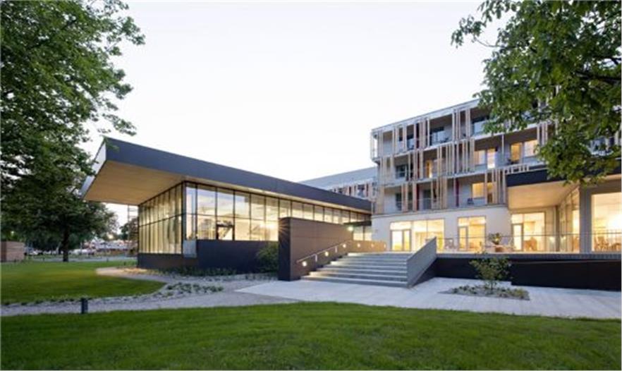 巴特沙勒巴赫療養(yǎng)中心位于特拉特納赫河畔,這家康復(fù)中心以最大化舒適度和最低運營成本在當(dāng)?shù)仡H受好評。此次設(shè)計與改造工程得到了鐵路醫(yī)療保險工人與礦工基金會(VAEB)的贊助,包括對醫(yī)療保健設(shè)施的現(xiàn)代化整修和改進(jìn)。整體的設(shè)計理念基于健康、自然和人文生態(tài)的之間的和諧轉(zhuǎn)換,并通過建筑空間和周圍自然環(huán)境的融合,以及天然材料的使用而達(dá)到最佳效果。
