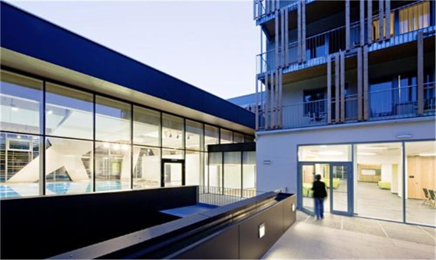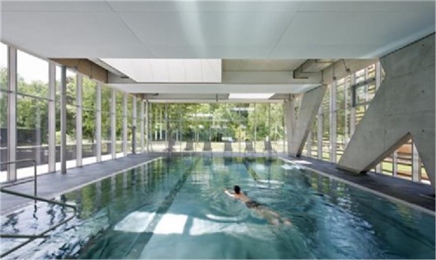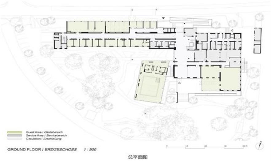 經(jīng)過20個月的施工過程,AC事務(wù)所完成了這個全新的中心設(shè)計并建造了全新的保健水療設(shè)施,為節(jié)能和保健設(shè)立新的標(biāo)桿。改造工作包括增加124張床位并對周圍的公園進(jìn)行進(jìn)一步升級建設(shè)。建筑團隊建造了一個4300平方英尺的新空間,包括酒店房間、理療區(qū)、泳池和餐廳。規(guī)劃中,建于1968年的5層樓建筑將增至6000平方米,并改善取暖效果。理療泳池以其向南的懸臂屋頂成為整個設(shè)施的中心。翻新后的陽臺采用木結(jié)構(gòu)和輕鋼結(jié)構(gòu)打造并在外墻搭配不規(guī)則的木制面板設(shè)計,在提高私密性的同時也可以讓用戶觀賞周圍的景致。