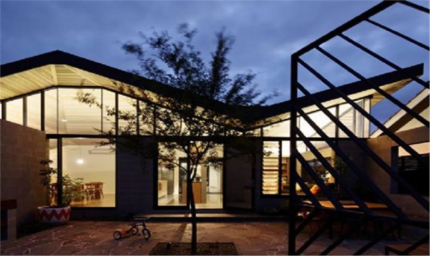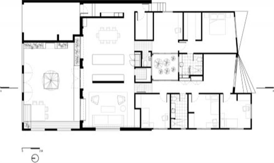 “半圍合的院子位于房子北側(cè),成為進(jìn)入建筑前的緩沖地帶,不僅為業(yè)主提供了干凈愜意的室外活動(dòng)場(chǎng)所,同時(shí)保證了室內(nèi)更好的光照條件”建筑師談到。