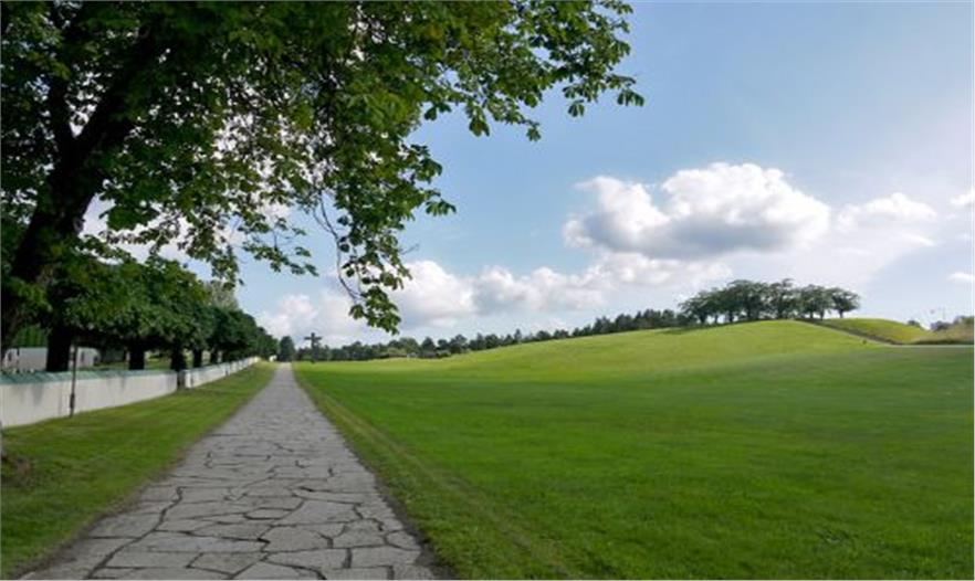 這塊位于斯德哥爾摩的公墓是由兩位年輕的建筑師──阿斯普隆德和萊韋倫茨設(shè)計(jì),建于1917-1920年。他們用砂礫鋪地,地上種滿了松樹。這里的設(shè)計(jì)把植物、建筑特色及地形的不規(guī)則性相結(jié)合,使景觀與墓地功能相融合。它對世界上許多國家的墓地設(shè)計(jì)都產(chǎn)生了深刻影響。