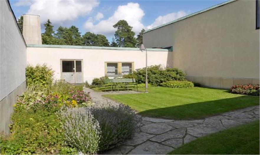 如今的小禮拜堂在形式上略顯拘謹(jǐn),但是在材料的選擇上,卻非常富有,阿斯普隆德專門請來的藝術(shù)家為這些建筑物進(jìn)行裝飾,而今人們看到的公墓是分散的位于松樹林中。還有一片紀(jì)念性的小叢林和一個紀(jì)念碑土墩,在戶外,還有一個骨灰安置所。斯科斯累格加登的南面有一個小涼亭,這里有一個長期對外開放的展示會,向人們展示有關(guān)這個公墓和兩位建筑師的故事。