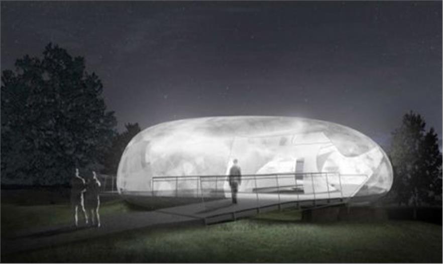 Smiljan Radic最近智利杰出的建筑爆發(fā)的關(guān)鍵人物。他設(shè)計(jì)的展館十分未來(lái)感,看上去像外星太空艙出現(xiàn)在了新石器時(shí)代遺址。建筑師說(shuō):“在外部,訪問(wèn)者會(huì)看到脆弱的殼座在大型采石場(chǎng)的石頭上。這個(gè)殼——白色、半透明的玻璃纖維制成的——將房子內(nèi)部圍繞成一個(gè)空的露臺(tái),從自然環(huán)境看上去放低了,有一種整個(gè)體積漂浮的感覺(jué)。晚上,由于外殼的半透明,路人能看到室內(nèi)的琥珀有色光線。”