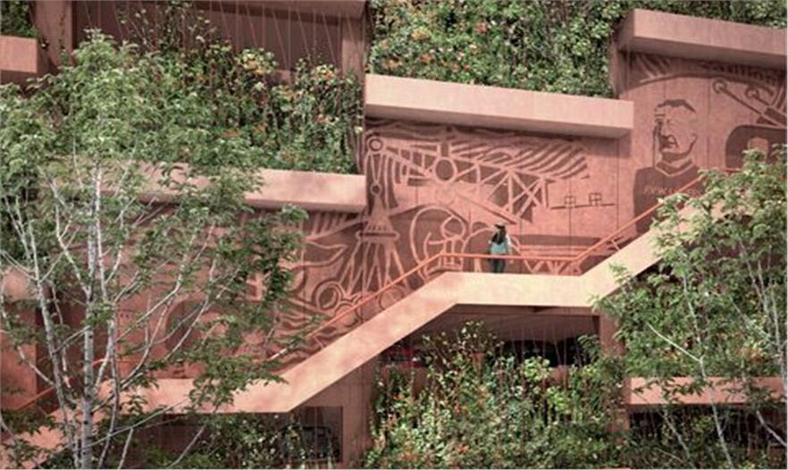 JAJA建筑事務(wù)所設(shè)計的哥本哈根多層停車場帶有綠化墻面,使外立面變得更為美觀,其外部樓梯通向屋頂?shù)木坝^花園。JAJA建筑事務(wù)所贏得了由哥本哈根港口城市發(fā)展部門組織的設(shè)計競賽,該項目坐落于城市Nordhavn區(qū),為市民和游客提供了新公共廣場和休閑區(qū)域。設(shè)計師表示,“項目基于預(yù)設(shè)的標(biāo)準(zhǔn)混凝土結(jié)構(gòu)之上。我們的方案作為第二個層次成為停車場的積極濾過結(jié)構(gòu)?!蓖\噲龉δ苄曰炷量蚣苁欠N植箱系統(tǒng)的基底,包含的綠化系統(tǒng)遮擋了停車場視線。
