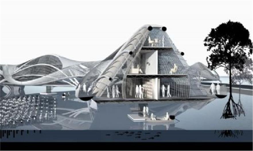 曼谷位于水源充沛的湄公河畔,目前人口以每年10萬的速度增長,但城市標高與逐漸上升的海平面標高的差距卻在日益縮小。要解決這一問題,到底是面對下沉,或者選擇漂浮,或者逃離?現(xiàn)在的曼谷周邊的污染也日益嚴重,當水面逐漸升高,還會對蝦養(yǎng)殖業(yè)以及紅樹林生態(tài)也造成了不可逆轉的影響。因此S+PBA設計出了這個可持續(xù)的,具有防洪力的,依靠構建飄離在水面之上的水城,水城有學校,社區(qū),公共場所,醫(yī)院,公建,工業(yè)等城市典型功能。同時最大化減少對水的依賴,保護紅樹林生態(tài),采取污水過濾系統(tǒng),保護蝦養(yǎng)殖業(yè),擁有無以倫比的綠色空間。S+PBA的目的不是簡單的設計一個水城,而是更在意水城后的社會形態(tài)是否積極,對城市居民,開放商都有好處,同時維護蝦農利益,保護恢復紅樹林生態(tài),在日益上升的海平面影響下,也可以保持城市人口增加和蓬勃發(fā)展。洪水,是禍還是福。這是一個體系的始返,而不是針對曼谷的一個單純?yōu)碾y。水,洗去20世紀背景下的一些弊病,以水為路,由內至外,營造出迷人風景。