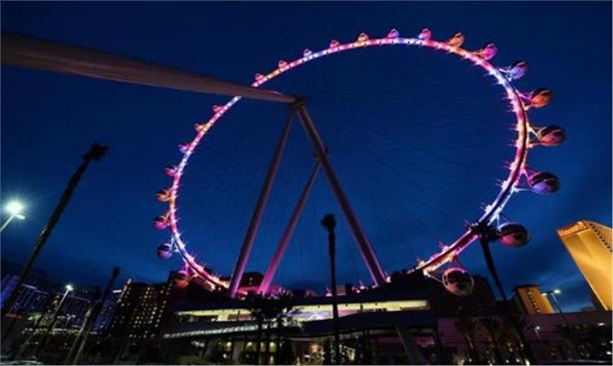 據(jù)外媒消息,世界最高摩天輪3月30日在美國內(nèi)華達州“賭城”拉斯維加斯首次試運行,當天上午11點半,當?shù)嘏e行儀式慶祝這個高達550英尺(約168米)摩天輪正式完工。
