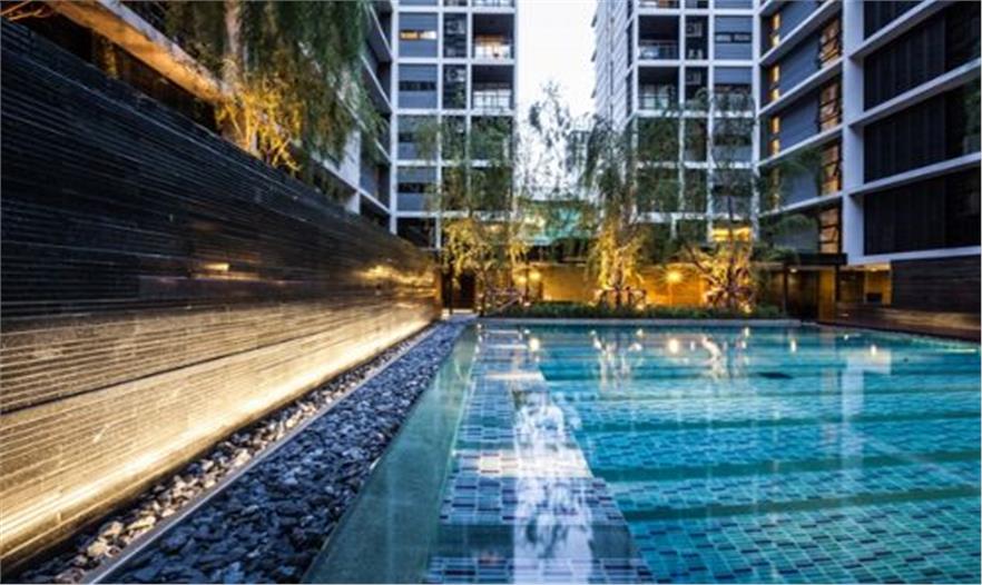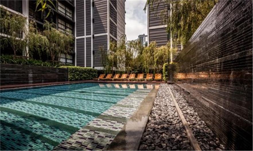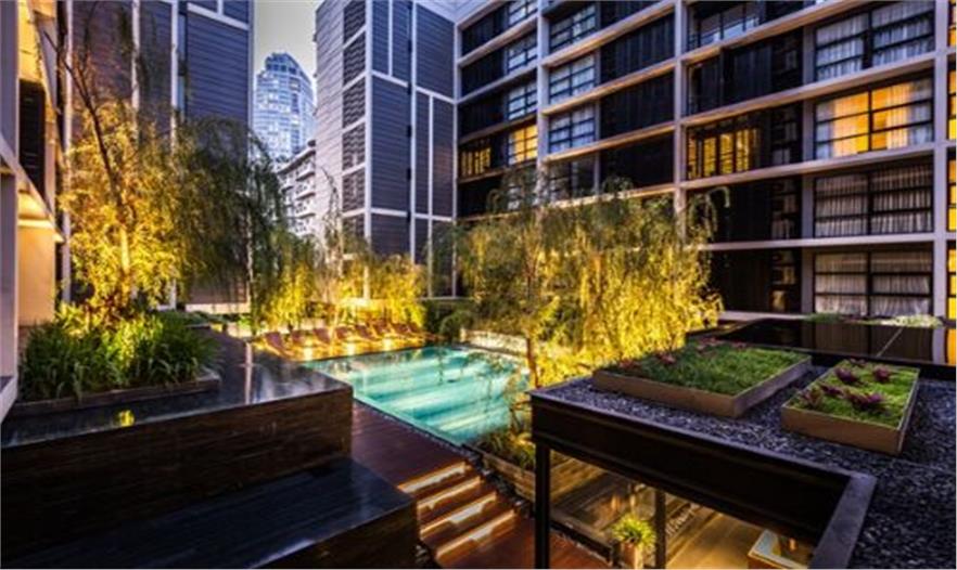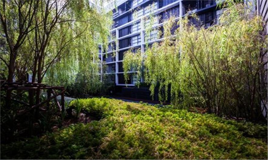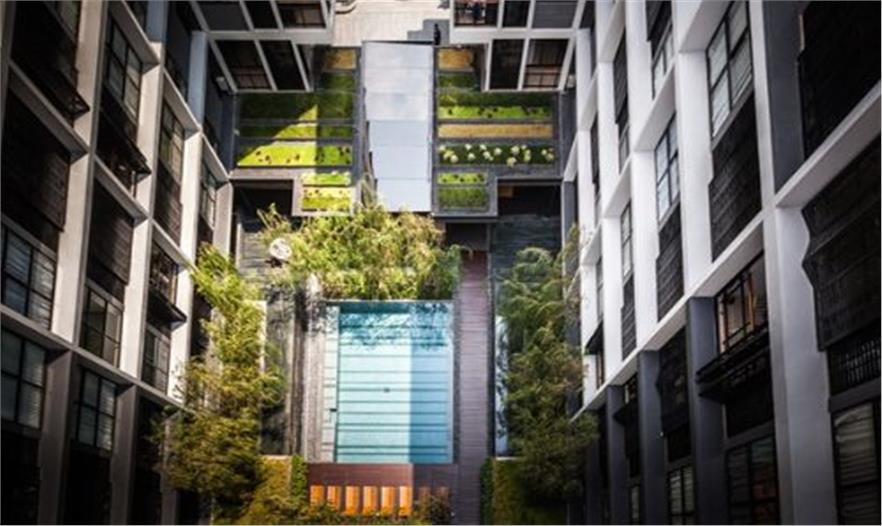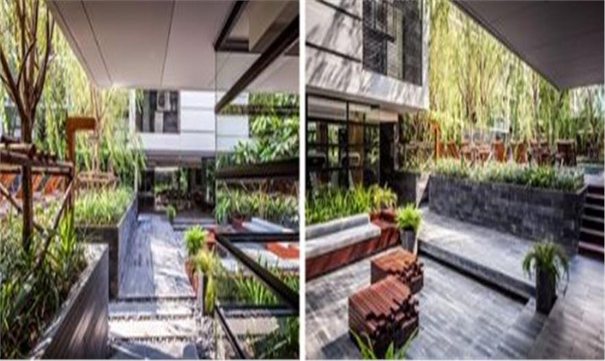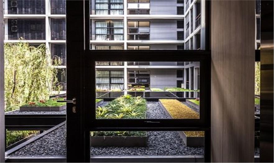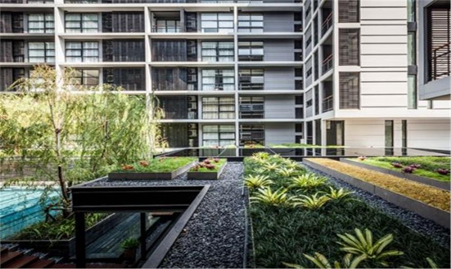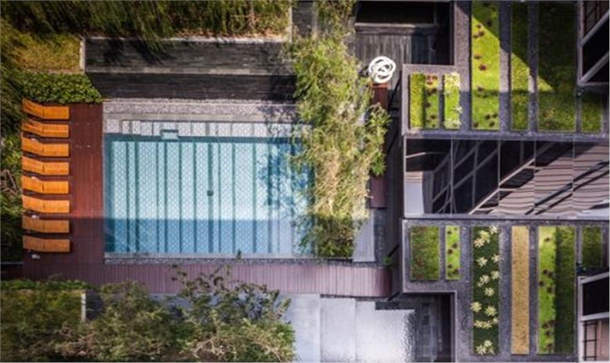 泰國城市中一個安靜的公寓公共花園——Mode 61,這個花園只依附一獨棟公寓存在,面積有限卻層次豐富,空間多重?;▓@能夠支持多種活動且保證彼此不被打擾,同時滿足了樓上的用戶朝下俯瞰時的美觀。不同高度水面與跌水還有那地面和墻面以及屋頂都存在的綠化,這里宛然一個水與綠的三維劇場。