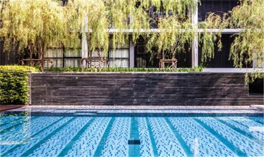 輕垂的柳枝成為天然的屏障,保護(hù)泳池隱私。天然石材和天然木材是硬質(zhì)景觀的主材,它們被精心運用而具有豐富的細(xì)節(jié),為用戶提供了一個質(zhì)樸同時品質(zhì)的戶外空間。