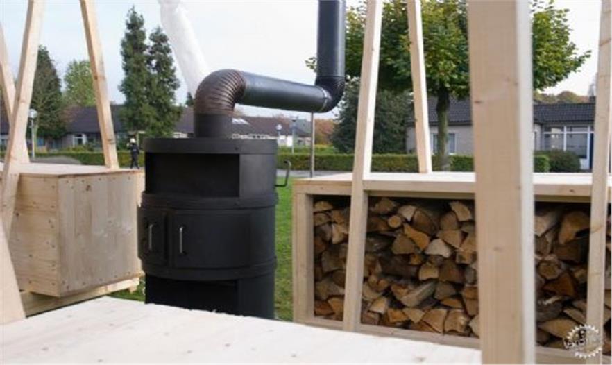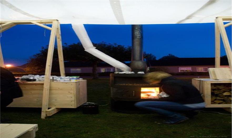 爐子燃燒釋放出的熱氣,填滿了這個(gè)充氣屋頂,這是整個(gè)設(shè)計(jì)中最引人注目的部分,屋頂同時(shí)為底下的野餐吧臺(tái)和餐桌提供了遮蔽。