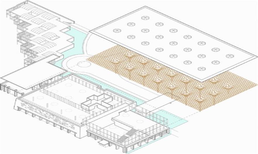 這里最容易讓人記住的部分當(dāng)屬常規(guī)接待區(qū)的六邊形網(wǎng)狀結(jié)構(gòu),從天花到柱子完全由六邊形的木肋編織而成,柱子仿佛是網(wǎng)狀結(jié)構(gòu)的突變形成的,整體性極強(qiáng),同時(shí)非常具有美感,讓人聯(lián)想到四周連綿的群山。普通VIP區(qū)由混凝土結(jié)構(gòu)建成,留宿VIP部分則是由鋼結(jié)構(gòu)按照類(lèi)似住宅的格局建造而成。