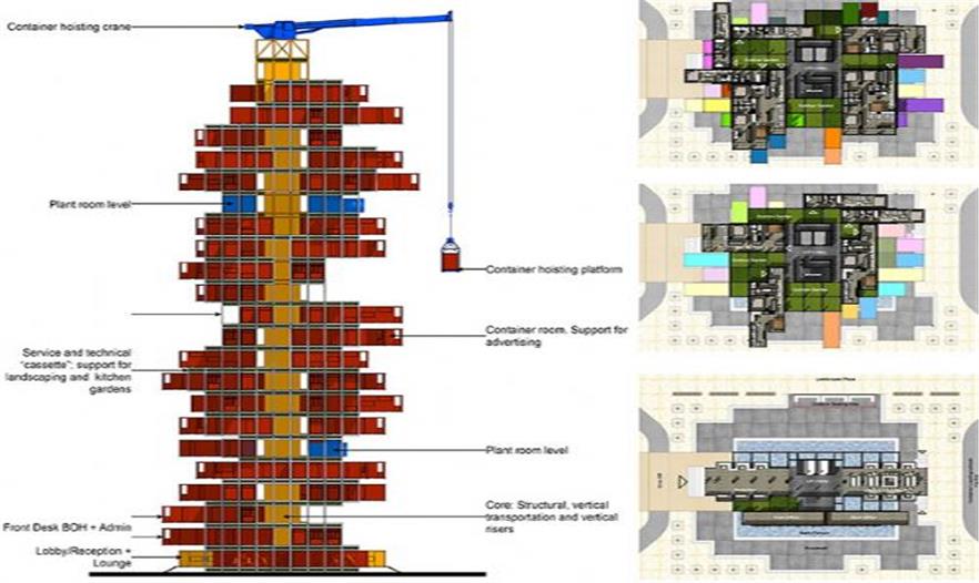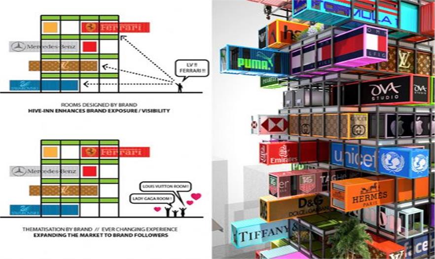 這款“蜂巢酒店”是由OVA建筑師事務(wù)所在香港完成的設(shè)計(jì),組成酒店房間的各個(gè)集裝箱可以隨意伸縮,從而使整個(gè)外觀處在不斷變化的過程中。事務(wù)所充分考慮香港有限的地理環(huán)境,并預(yù)見到在未來有可能非常常見的一種居住模式:更多的申請(qǐng)者將更加需要諸如緊急性住房和醫(yī)療保障單元房。這些單元房可以被隨時(shí)拆卸組裝到任何地方,并且可以承擔(dān)各種不同功能,比如辦公、出租房或公司的臨時(shí)辦公區(qū)等。設(shè)計(jì)團(tuán)隊(duì)正是以這種“可持續(xù)設(shè)計(jì)”理念為基礎(chǔ),將各個(gè)集裝箱體進(jìn)行預(yù)制部件組裝,并根據(jù)需要進(jìn)行布局。