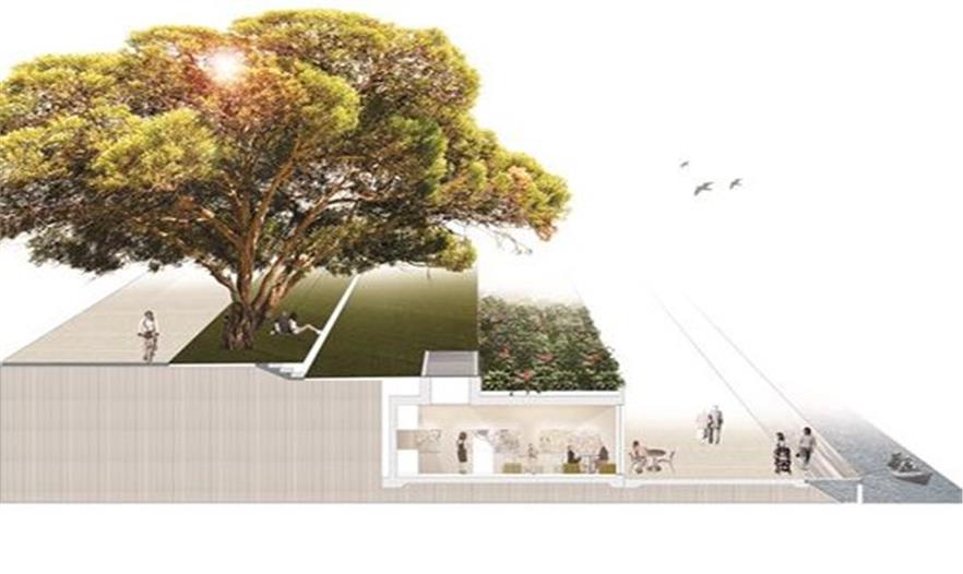 花園的中心地帶會有一個多用途社區(qū)中心,其中包括一間咖啡廳、一個信息中心、公共設施、社區(qū)空間和供市民和私人活動的場地。設計師的想法是建造一個綠色屋頂,沿地面而下,越過建筑物形成一個表演舞臺,并且沿著阿爾伯特街一路直抵河岸,視線開闊,景色宜人。