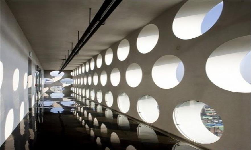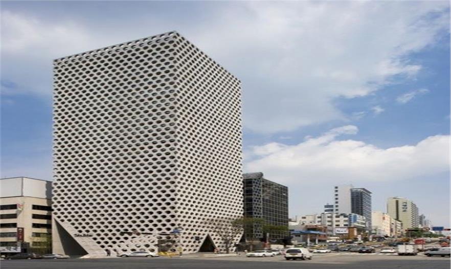 位于韓國(guó)首爾,占地面積為10,166平方米。整體的簡(jiǎn)約是一種姿態(tài),圓孔的組合并非旨在表達(dá)建筑的外表而是企圖解決暴露于外的雙層結(jié)構(gòu)墻的死板。內(nèi)和外幕墻之間的空間產(chǎn)生一個(gè)陰影,它具有多種功 能。從設(shè)計(jì)的角度來(lái)看,它使建筑在視覺(jué)效果上更有深度,使得難以區(qū)分樓層,使外墻被看作一體。作為節(jié)能的目的,它阻止熱陽(yáng)光直射和冷風(fēng),并形成對(duì)流流動(dòng),以降低玻璃的溫度或達(dá)到保暖效果。