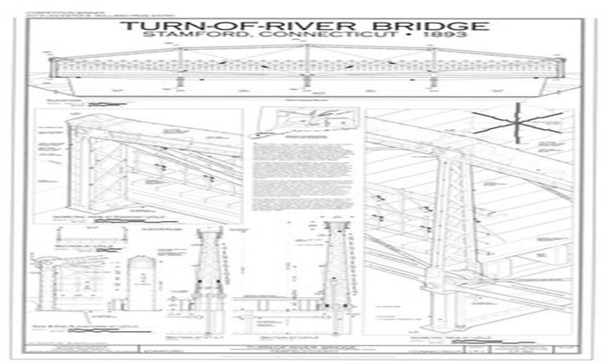 2013霍蘭獎(jiǎng)獲勝者摩根·弗萊辛的作品是合符“美國(guó)歷史工程記錄”(Historic American Engineering Record)標(biāo)準(zhǔn)的“活動(dòng)橋”(Turn-of-River Bridge)實(shí)測(cè)繪圖。這座橋梁位于美國(guó)康涅狄格州的斯坦福德市。這是一座形狀獨(dú)特的橋梁。建設(shè)于1893年。