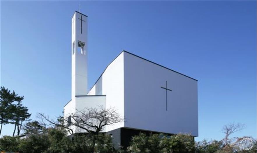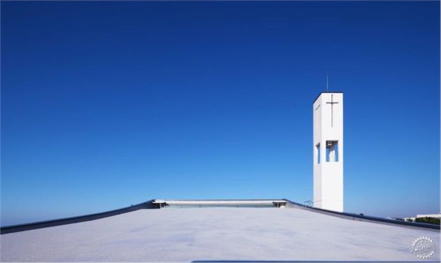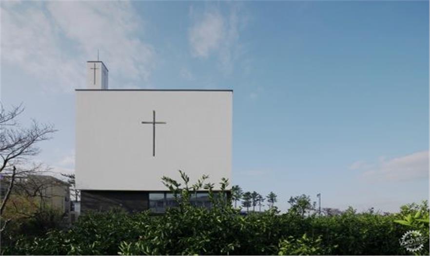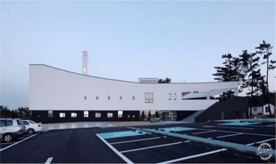 濟州島是一個火山島,主要由玄武巖和火山巖構(gòu)成。人們的生活方式和觀點總會和玄武巖扯上一定的關(guān)系。因此,教堂的基礎(chǔ)和地板采用了濟州島當?shù)爻R姷男鋷r。白色的外立面及其弧形的屋頂形式使得教堂從周邊自然環(huán)境中突出出來。同時,弧形的外觀隱喻了濟州島火山地區(qū)的自然環(huán)境。