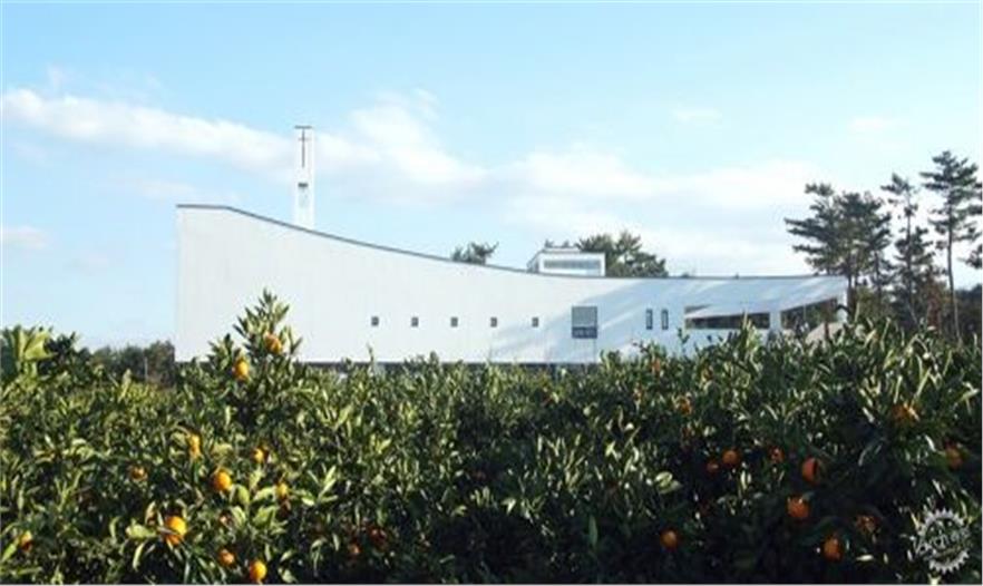 由ZIP Partners Architecture設(shè)計的JA弧形教堂,坐落于韓國最美麗的島嶼之一——濟州島。場地位于濟州島郊區(qū),周邊是茂密的松林和柑橘園。美麗的自然環(huán)境,便捷的交通區(qū)位,是教堂的理想場所。教堂作為一個巧妙的建筑設(shè)計,與周邊環(huán)境形成和諧的關(guān)系。