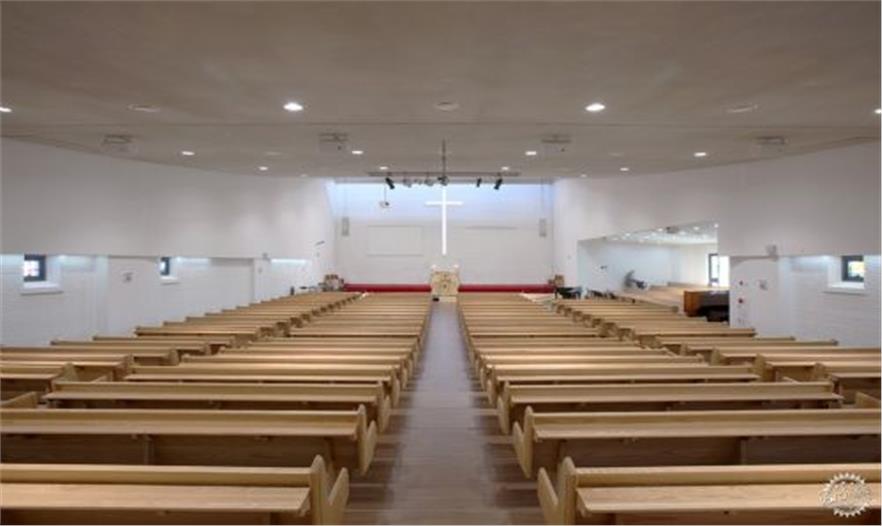 該教堂建筑采用了一個簡單的形式,以適應不同的宗教節(jié)日。建筑一層布置了辦公空間、廚房設(shè)施、集會用的會議室。戶外樓梯通向迷你花園,可以進入二樓的門廳和主教堂。這個與生俱來的宗教圣地也給人一種莊嚴的感覺。