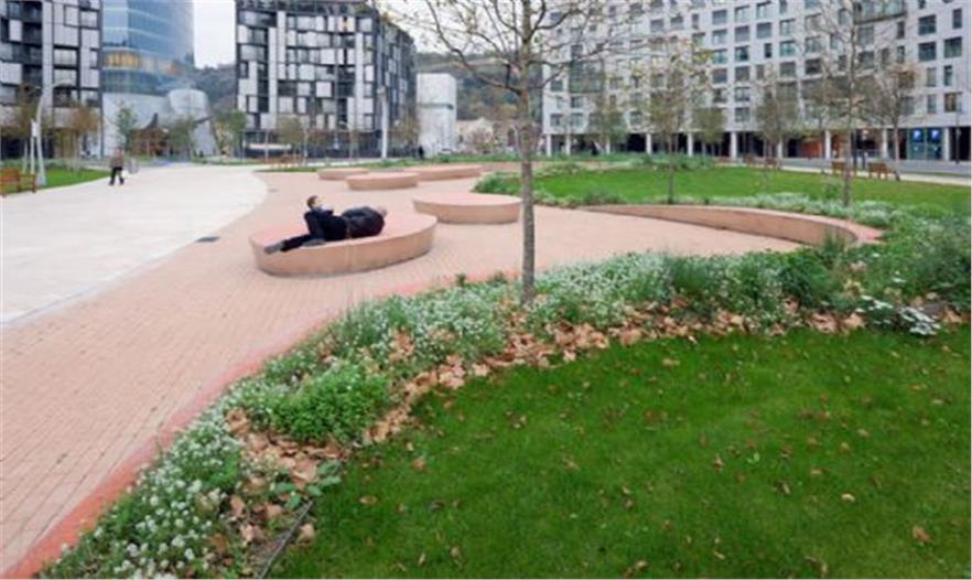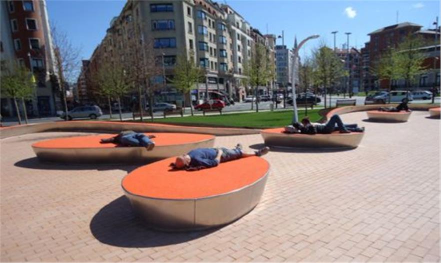 Euskadi廣場(chǎng)連接起了城市中19世紀(jì)名為El Ensanche的部分及比爾堡的新城區(qū),迪烏斯托大學(xué)校園、古根海姆博物館和Nervión河。