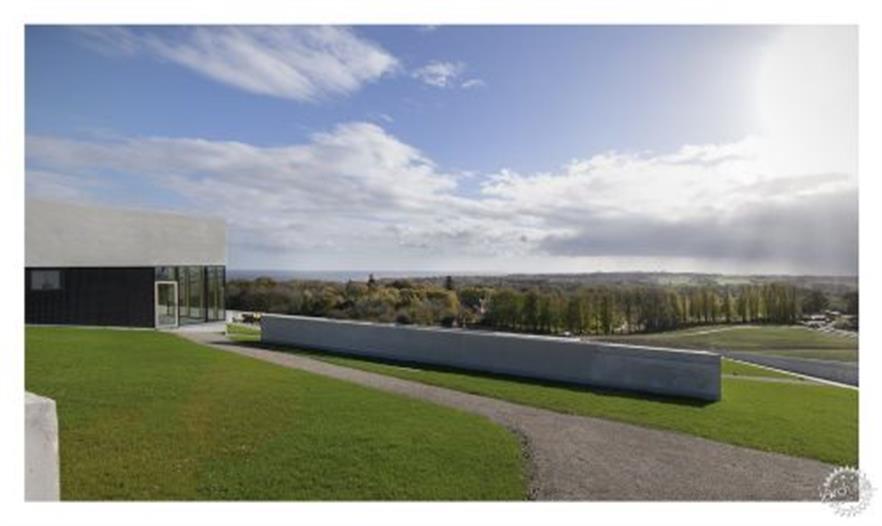 新博物館位置很特別,正好位于Skåde丘陵地帶。傾斜的屋頂上種植著顏色亮麗的綠草、苔蘚和鮮花,使得該建筑成為一座強大的視覺地標(biāo),即使在海上遙望,也可以看得清楚。