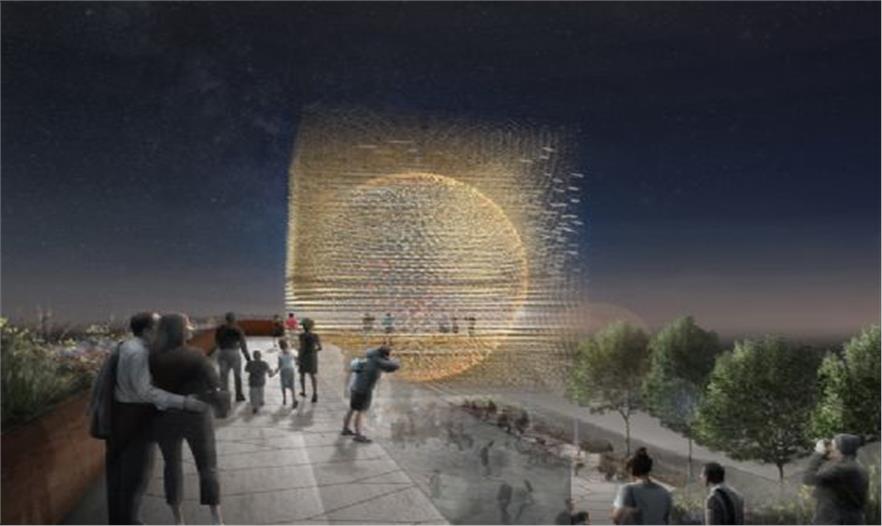藝術(shù)家wolfgang buttress已獲得2015米蘭世博會英國館的設(shè)計委任。與世博會總主題“滋養(yǎng)地球,生命能源”相對應(yīng) ,該策劃的目的是展示人類和蜜蜂之間的相似性和彼此間的聯(lián)系。該場地是一組景觀循序漸進,引領(lǐng)至設(shè)計的核心,“蜂巢”。該結(jié)構(gòu)整體呈矩形,高3米,中心有一個橢圓形的孔洞。游客可以占領(lǐng)這個內(nèi)部空間,通過場館的建筑品質(zhì)來體驗蜂窩的感覺。振動和閃爍的燈光激活了空間,并實時獲得一組蜜蜂的信息。