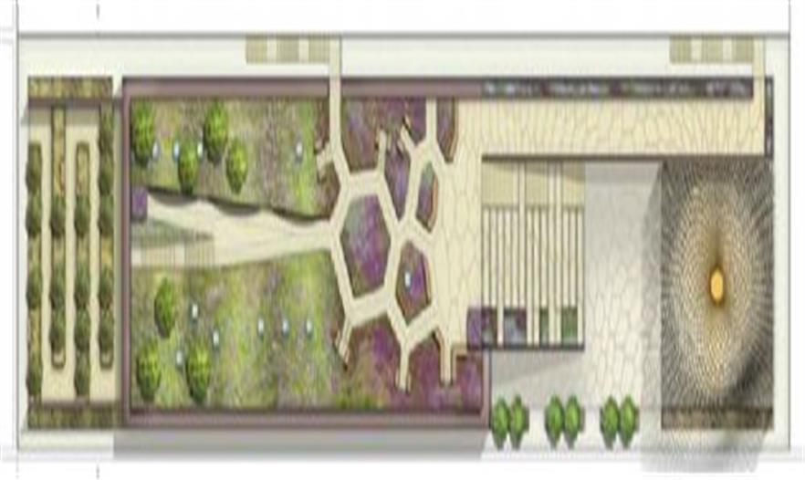 在進入展館時,首先映入眼簾的是英國蘋果樹和梨樹。然后上面是一個樓梯通往由一條彎曲小徑連接的輕輕起伏的草地。這樣的安排讓賓客可以身臨其境地探索和體驗路上的風景。一個圓形露天劇場提供休息的區(qū)域觀看“蜂巢” ,同時也作為在晚上表演和電影放映的空間。一條綠化帶位于裙樓的頂部,該建筑包含一個禮堂,展覽館,禮品店,廚房,辦公室和一個植物室。