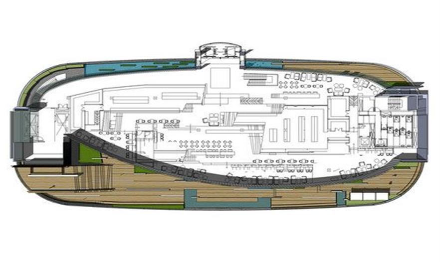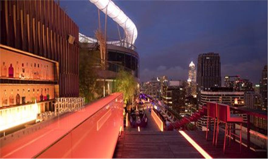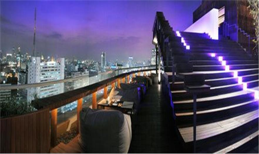 項目位于Zen世界的樓頂,也就是17層。這里擁有曼谷中央地區(qū)最好的視野之一。項目始于2007年。室內設計由著名的年輕泰國建筑設計工作室DEPARTMENT OF ARCHITECTURE承擔。T.R.O.P是由DEPT聯(lián)系來幫助設計室外區(qū)域的景觀。這里的主要特征是無遮擋的全景視野。因此我們的第一個設計行動是確保實現(xiàn)完整視野甚至讓它更進一步。室外面積總共約有900平方米,設計的挑戰(zhàn)在于客戶希望放置盡可能多的座位。另外一個主要問題是,露臺的現(xiàn)有形狀不是矩形,而是半橢圓形。據此,我們由安排座位來開始這個設計,為露臺的每一個區(qū)域創(chuàng)造有趣的座位排布。最終,我們在主要的露臺上做出了一些層次差異,來將整個空間劃分成若干區(qū)域:主用餐區(qū)、私人區(qū)和空中酒吧。