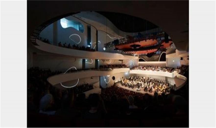 一個(gè)立方體的、U形的建筑,圍繞著一個(gè)有1,300個(gè)座位的音樂(lè)廳安排。這個(gè)音樂(lè)廳號(hào)稱(chēng)是歐洲最好的演奏交響樂(lè)的音樂(lè)廳之一。
