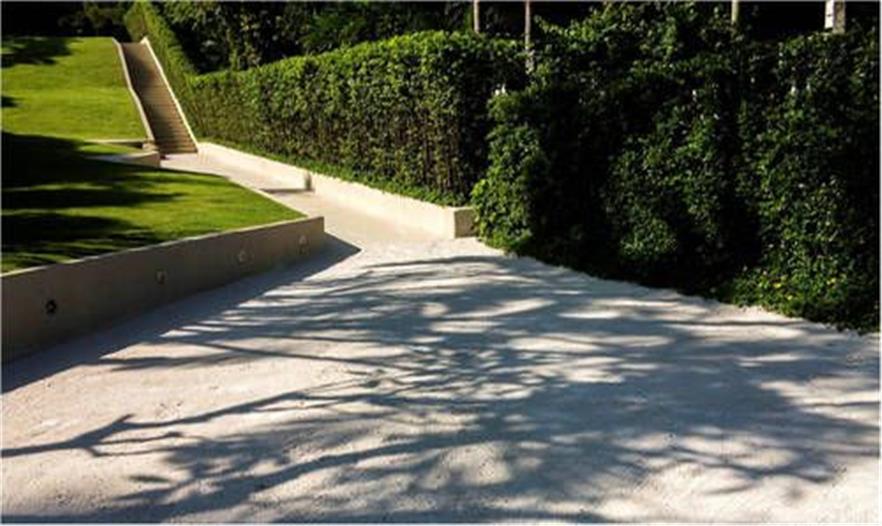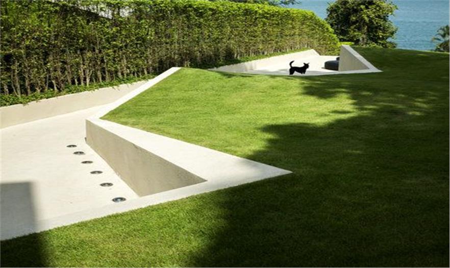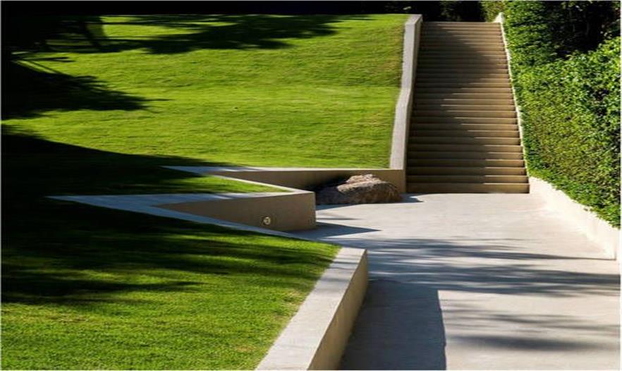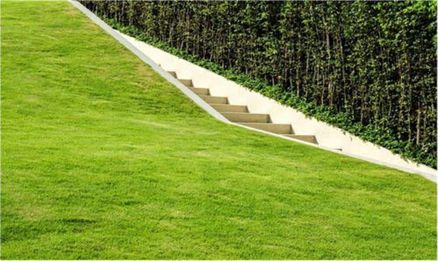 草坪山丘被有意地抬升起來,比道路稍微高出一些,創(chuàng)造出了一種階梯消失在草坪之中的景象。
